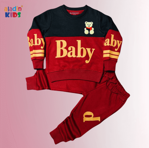 Boys BABY PANDA Winter Sweatshirt & Trouser Set Black & Maroon