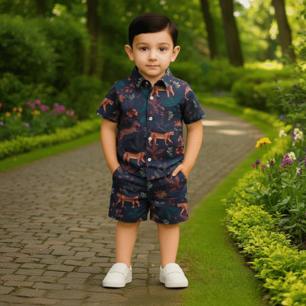 Boys All JUNGLE Printed Shirt & Pant Set Dark Navy Blue
