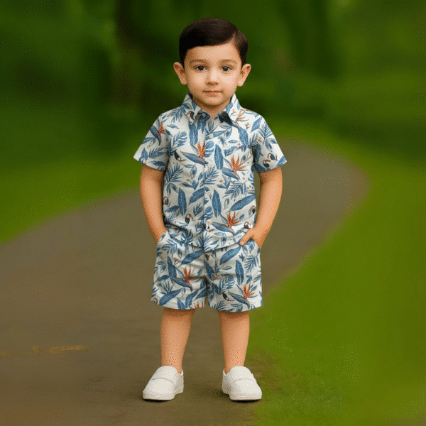 Boys All Over LEAF Print Shirt & Pant Set Off-White