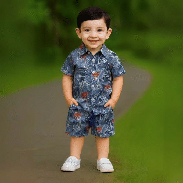 Boys All Over LEAF & TIGER Print Shirt & Pant Set Multicolor