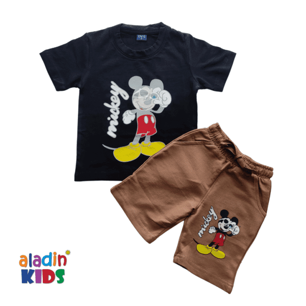 Boys Cute Mickey Printed T-shirt & Pant Set Black