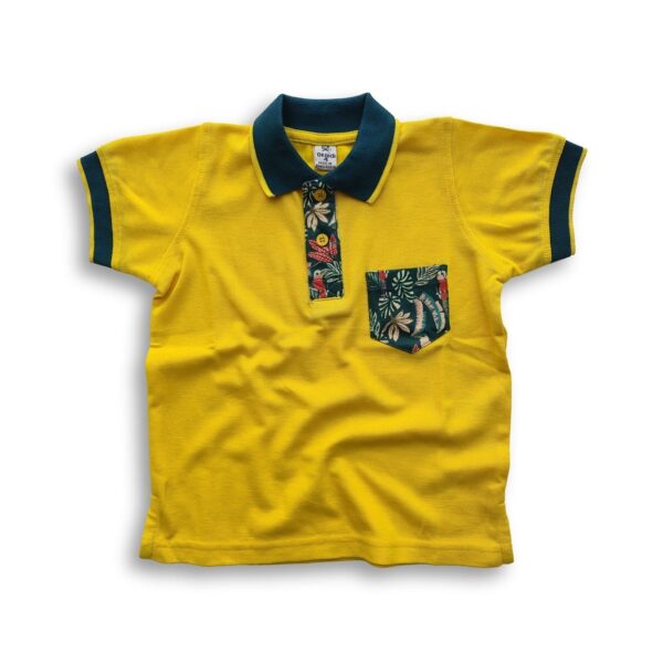 Boys Stylish Floral Printed Contrast Polo Shirt Yellow