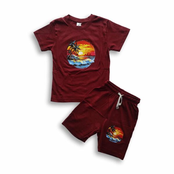 Boys Sunset Printed T-shirt & Pant Set Maroon