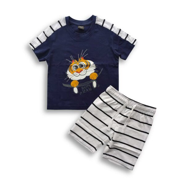 Boys Tiger Printed Contrast T-shirt & Pant Set Blue