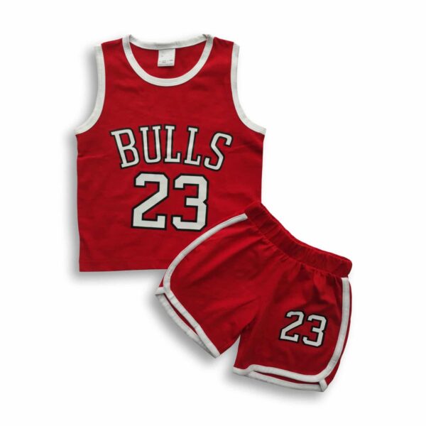 Be the first to review “Bulls 23 Printed Megi T-shirt & Pant Set Red”