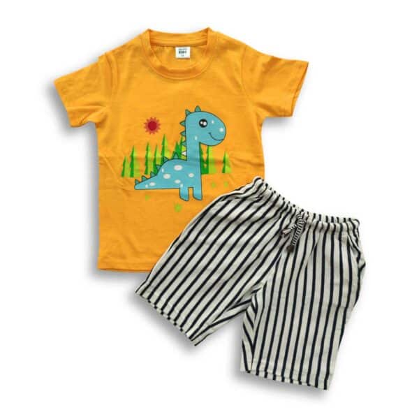 Cute Dinosaur Printed T-shirt & Pant Set Yellow Orange
