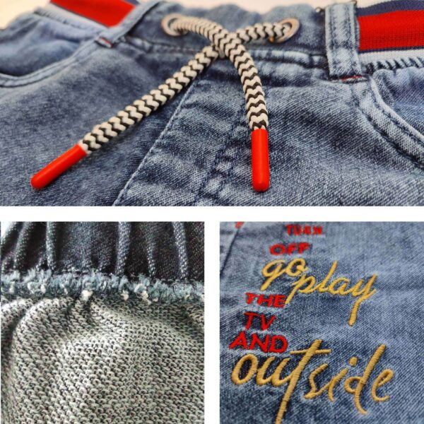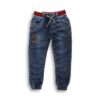 Drawstring Knit Denim Embroidery Jogger Pant for Boys
