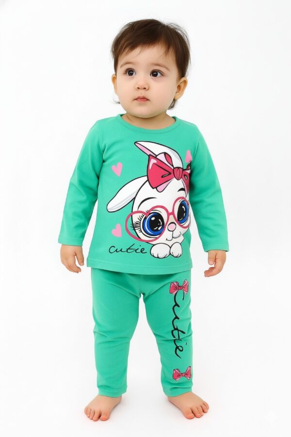 Girl’s Cutie Bunny Full Sleeve T-Shirt & Full Pants Set Mint Green