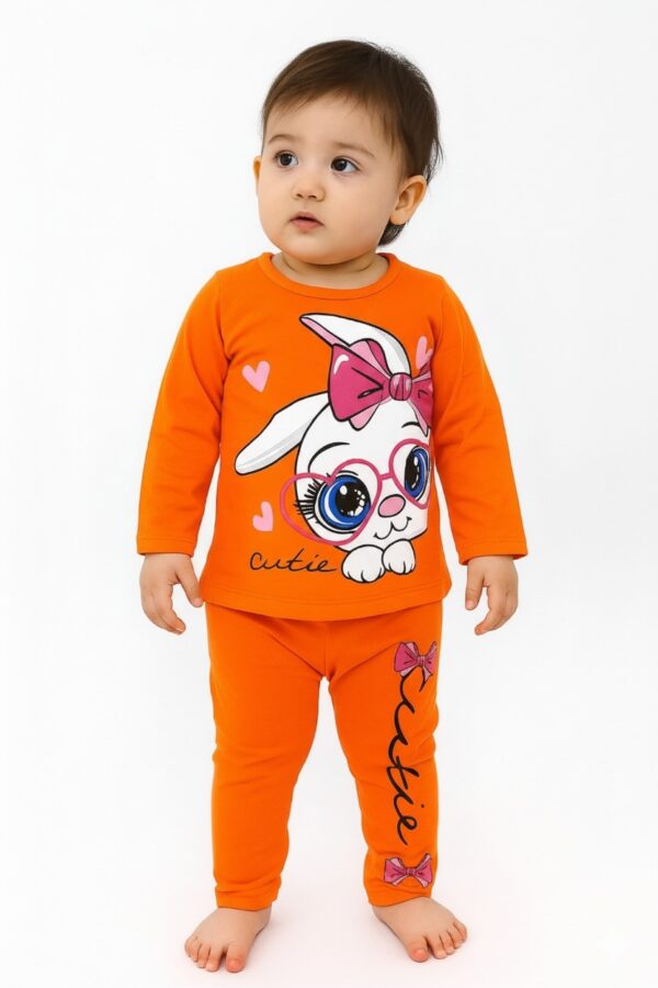 Girl’s Cutie Bunny Full Sleeve T-Shirt & Full Pants Set Orange