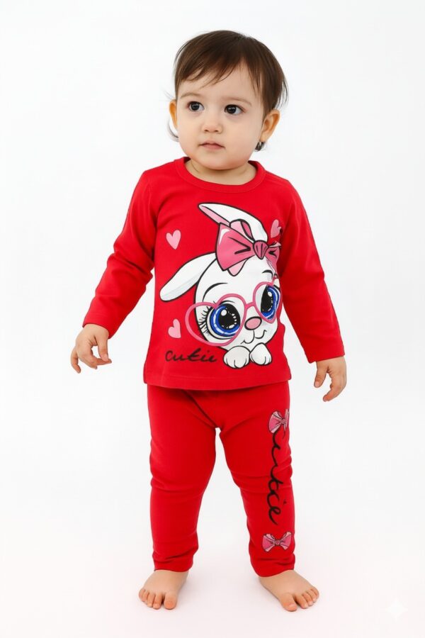 Girl’s Cutie Bunny Full Sleeve T-Shirt & Full Pants Set Red