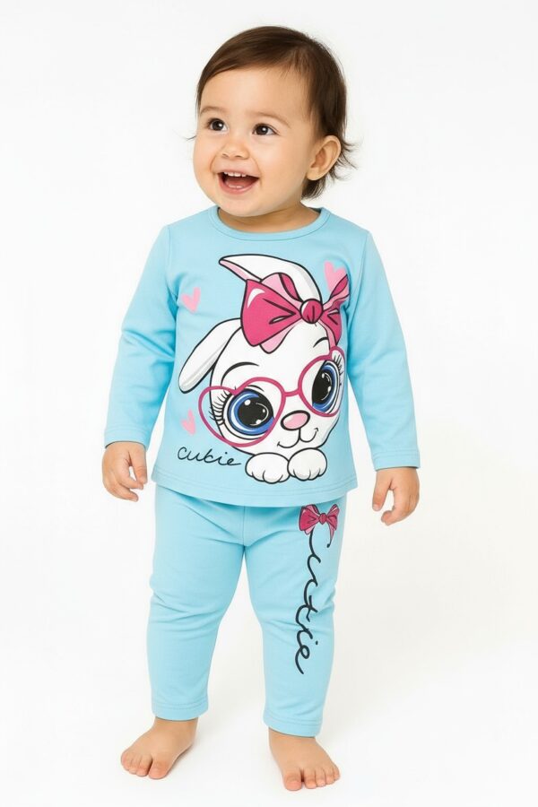 Girl’s Cutie Bunny Full Sleeve T-Shirt & Full Pants Set Sky Blue