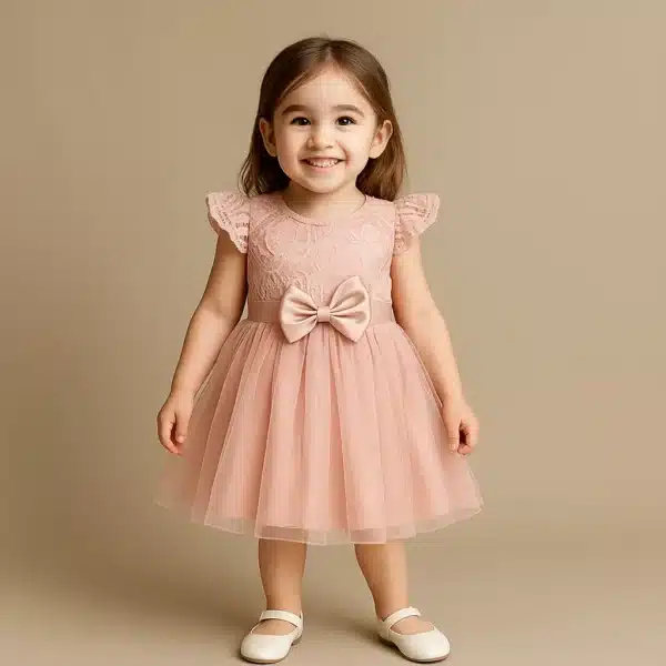 Girls Premium Embroidery Mesh Lace Party Dress Sweet Pink