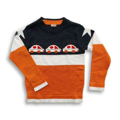 Kids Car Winter Sweater Blue Orange