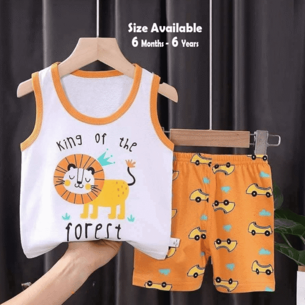 King of The Forest Printed Megi T-shirt & Pant Set White & Orange